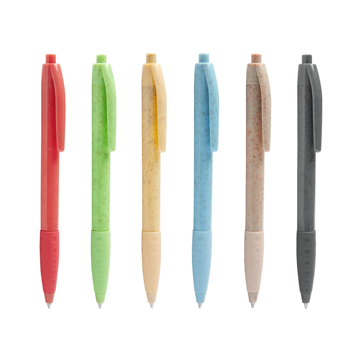 Material eco-friendly a base de fibra de trigo. Incluye grip de silicón antiderrapante. Mecanismo pulsador.