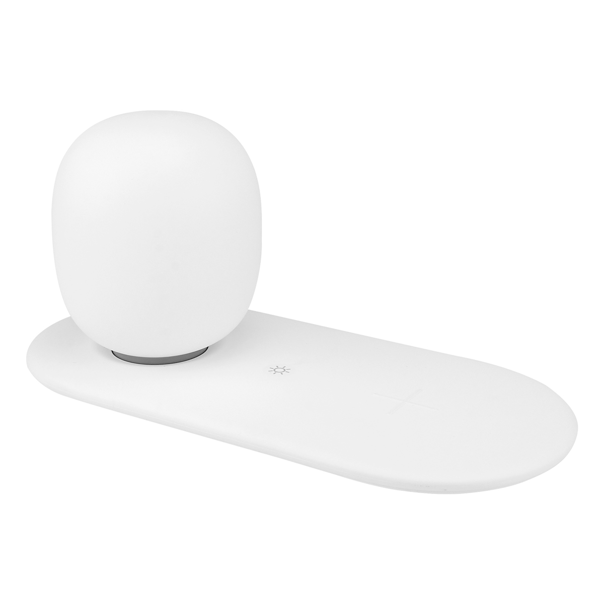 Cargador inalámbrico para smartphone con lámpara de escritorio. Compatible con la mayoría de dispositivos comerciales que cuenten con tecnología de carga inalámbrica. Potencia de carga de 5W. Incluye cable cargador.