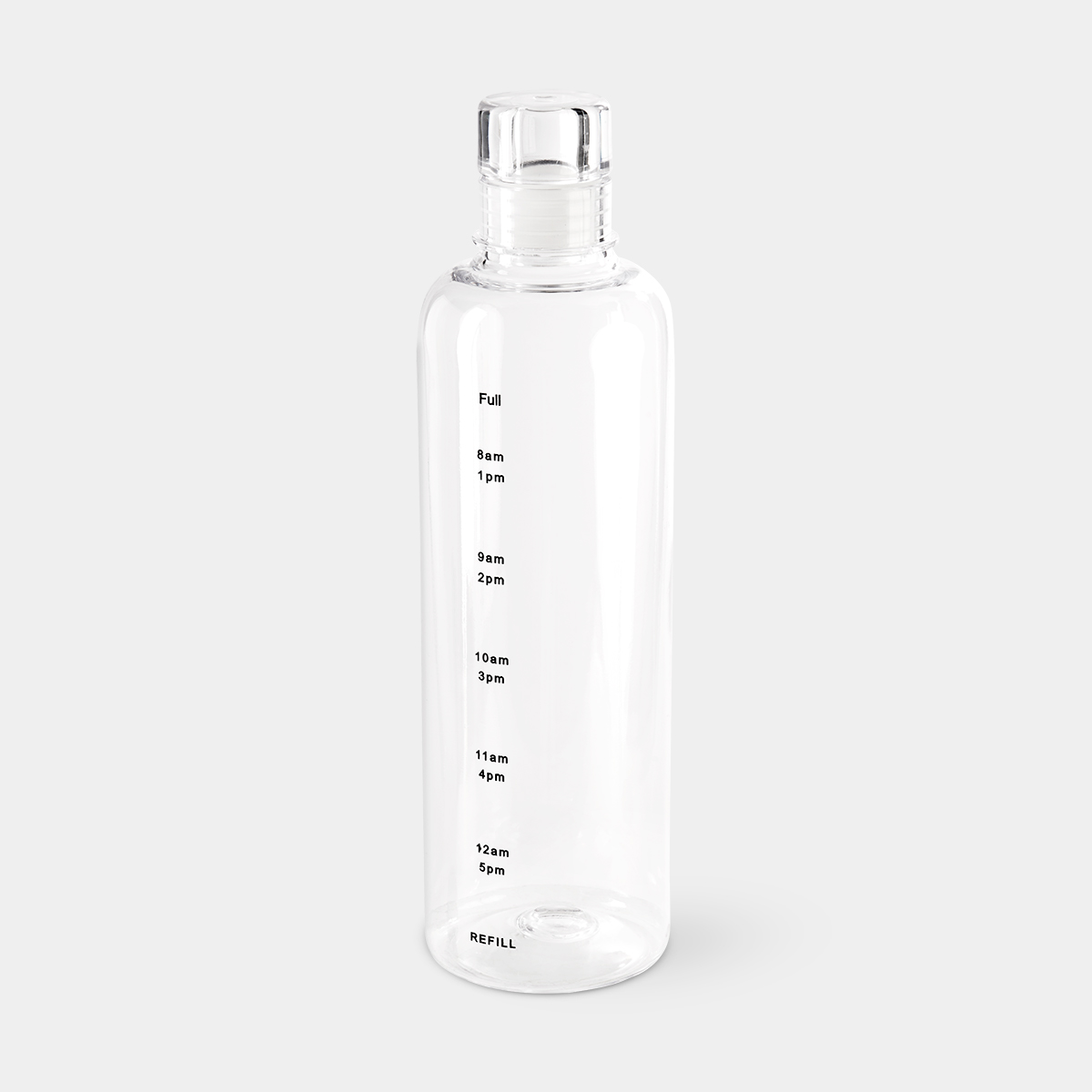 Tapa con sistema push que evita derrames. Cuerpo transparente con indicador de horas para motivar y controlar tus hábitos de hidratación.