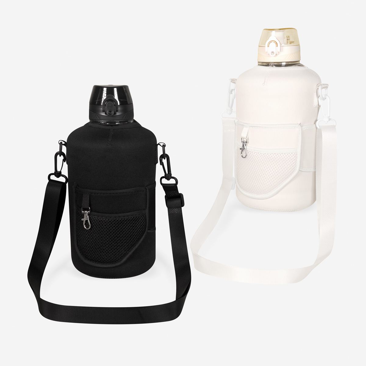 Cilindro con pared sencilla de plástico. Incluye funda removible de neopreno. Tapa de plástico con sistema de rosca y sobretapa que agrega un clip de seguridad para evitar derrames. Su tamaño esta diseñado para quienes necesitan llevar una gran cantidad de agua de manera práctica, es perfecto para actividades intensas, largas jornadas o aventuras al aire libre, asegurando que nunca te falte agua. Los bolsillos de su funda, te permiten organizar tus artículos esenciales y no perderlos de vista mientras te ejercitas y su correa ajustable lo hace ideal para llevarlo contigo sin mayor esfuerzo.