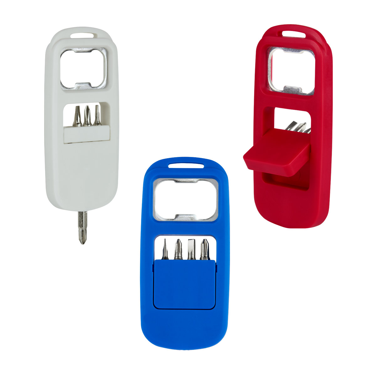 Incluye destapador y 4 puntas de desarmador diferentes e intercambiables.