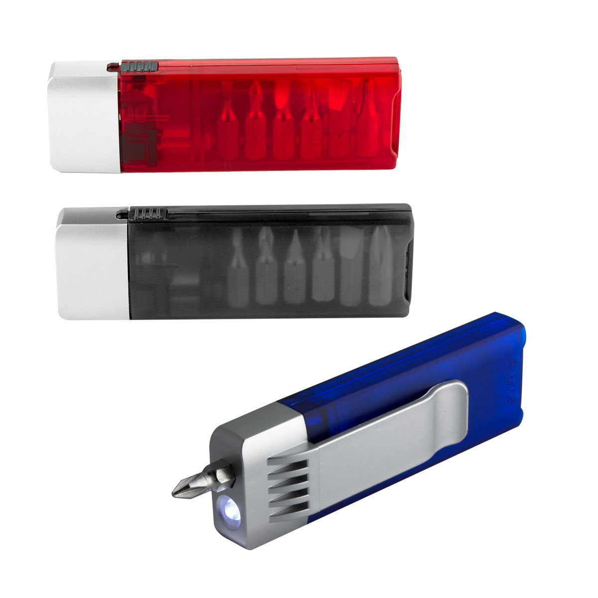 Contiene desarmador con 6 puntas diferentes e intercambiables, lámpara y clip. Incluye 4 baterías de botón.