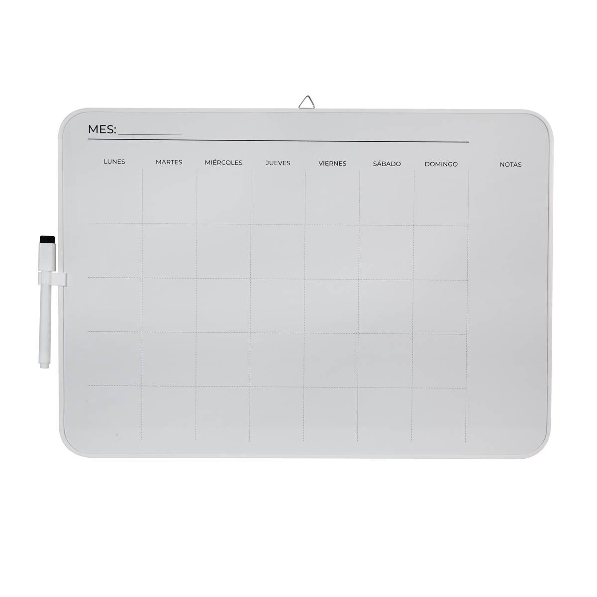 Pintarrón con planeador mensual ideal para organizar tus prioridades. Incluye marcador con borrador y gancho superior para colgarlo fácilmente en tu espacio de trabajo. Su retícula te permite personalizar mes y días, perfecto para uso diario en el hogar, oficina o colegio. Este producto por ser últimas piezas puede presentar alguna variación, no se aceptan devoluciones.