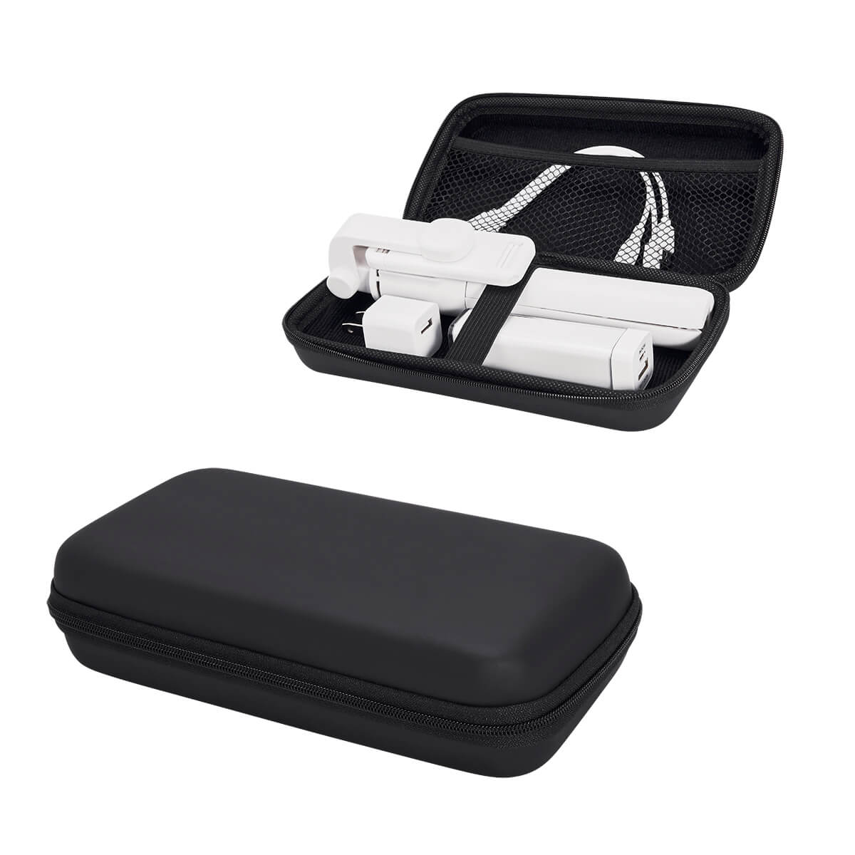 Incluye selfie stick inalámbrico con bluetooth y control remoto para accionar la cámara a distancia. Batería auxiliar de 2,200 mAh, cargador de pared, cable cargador USB 3 en 1 (micro USB, tipo C y lightning) y estuche.