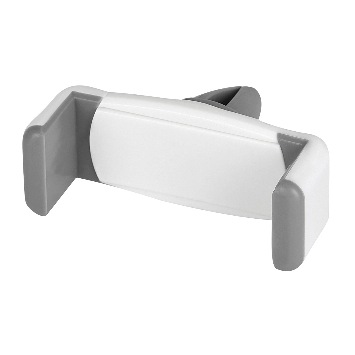 Soporte con mecanismo ajustable para smartphones de 6 a 8 cm de ancho. Ángulo de rotación de 360°. Se monta en las ventilas del aire acondicionado.