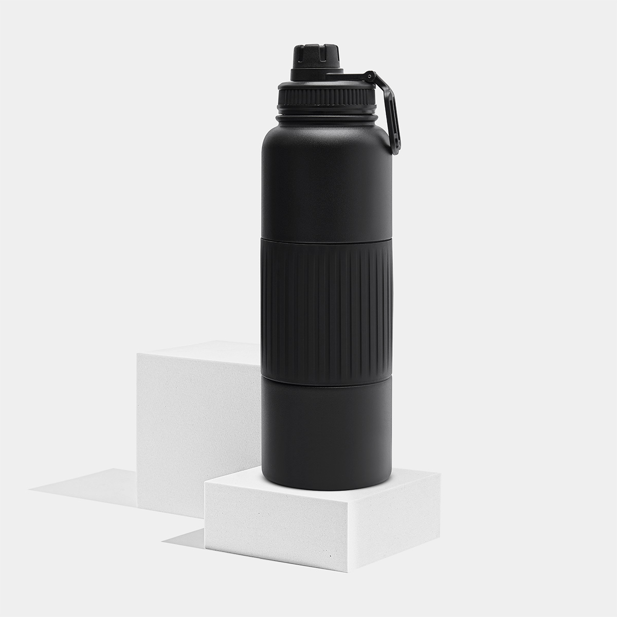Doble pared. Cerrado al vacío. Pared interna y externa acero inoxidable. Cuenta con manga de silicón. Terminado tipo rugoso. Tapa de plástico con doble boquilla y asa. Mantiene temperatura caliente 6 hrs y temperatura fría 8 hrs aproximadamente. Incluye caja individual.