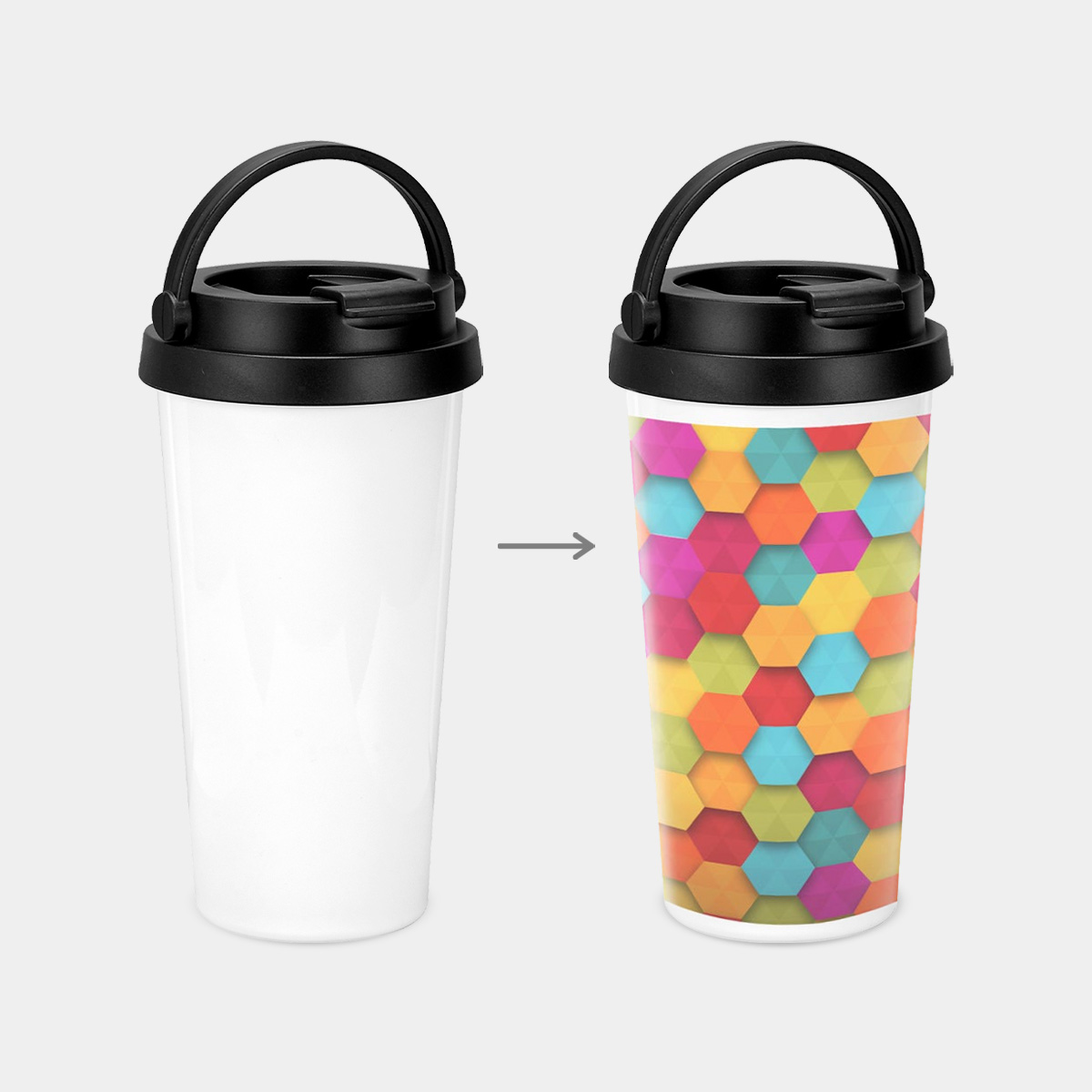 Termo para sublimar doble pared. Cerrado al vacío. Pared interna y externa de acero inoxidable. Tapa de plástico con válvula de seguridad y asa plegable. Mantiene temperatura caliente 6 hrs y temperatura fría 8 hrs aproximadamente. Incluye caja individual.